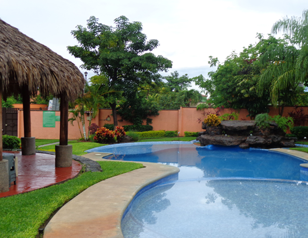 Frente a la casa está la alberca, palapa, juegos infantiles, asador y un amplio jardín. Dentro del fraccionamiento hay iglesia, tienda de abarrotes, lavandería, y plaza. La cuota de mantenimiento es de $950.00.